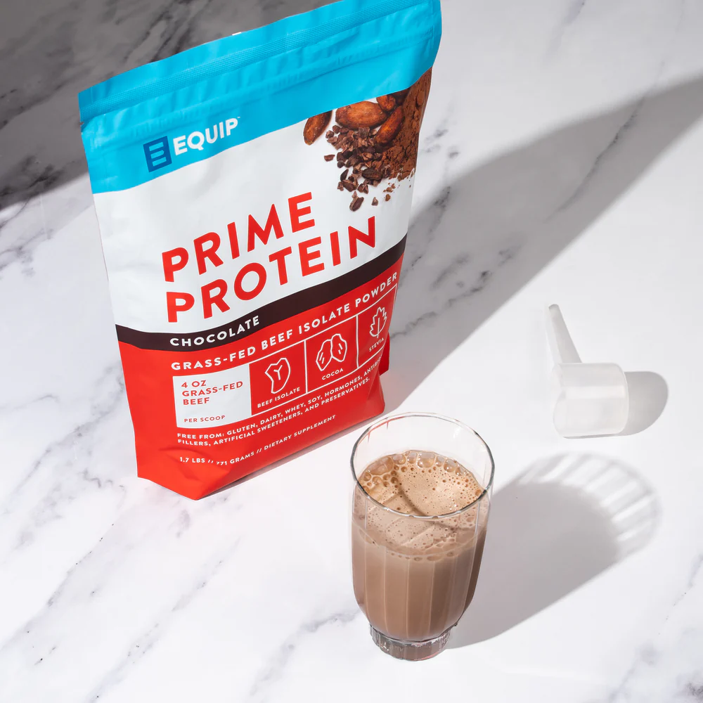Not at all. This isn’t broth or steak in a shaker. Thanks to thoughtful sourcing and real-food flavor ingredients (like cacao or vanilla), Prime Protein tastes like a milkshake, not a meat stick.