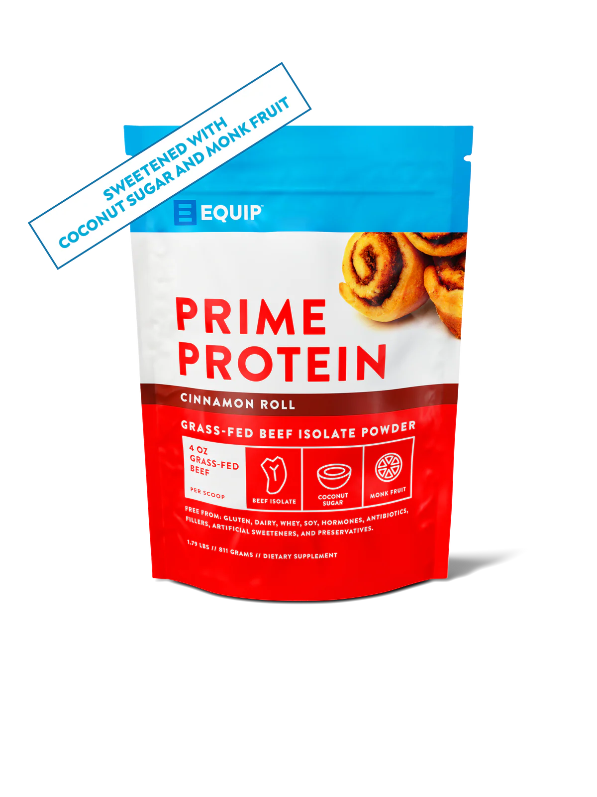 Prime Protein delivers 21g of complete protein from grass-fed beef isolate, plus naturally occurring collagen and gelatin, from real food ingredients. No whey, no dairy, no gluten, no soy. Just clean, bloat-free fuel your body knows exactly how to use.